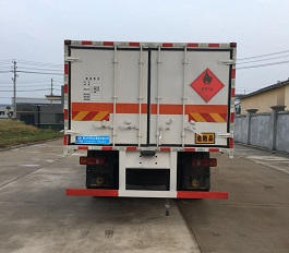 厢体底部防滑花纹板,外观有危险品标识,其余标配,箱体颜色白色。
