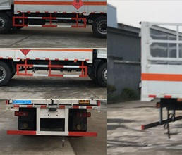 | 配置 | 该车适用于运输危险物品为危化品运输车。主要用于运输具有独立容器(瓶)包装的液化石油气,丁烷,乙炔,乙烷,丙烷,丁烯,打火机或打火机加油器,二氧化碳,压缩氧(氮,空气,氦,氩,氖),类项号:2.1,2.2。该车运输的介质为2.1项易燃气体时,车辆采用”易燃气体”标识牌,运输的介质为2.2项非易燃无毒气体时,车辆采用”不燃气体”标识牌。采用发动机EQH160-52,EQH160-53,EQH180-52,EQH180-53分别对应的油耗值为(L/100km):24.8,24.8,24.8,24.8。整车长/轴距/前悬/后悬对应关系为(mm):9000/5000/1430/2570,9000/5000/1365/2635,9000/4700/1430/2870,8600/4500/1430/2670,8600/4500/1365/2735.该车安装带有卫星定位功能的行驶记录仪,仅采用前盘制动器和安装ABS以及前置消声器的底盘,采用子午线轮胎,前置排气管,安装限速装置,限速80km/h。专用装置为固定用卡槽。侧防护和后防护装置材料材质为Q235A碳钢,侧防护与箱体底部焊接连接,后防护装置与车架采用焊接连接。后防护截面尺寸(mm):120?0,离地高度为440mm。ABS型号:3631010-C2000,ABS 8;ABS生产厂家:东科克诺尔商用车制动系统(十堰)有限公司。 | ||
