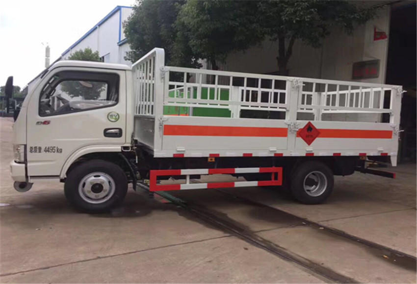 上装部分:整车长5995×2220×2420mm,内尺寸4100×2050×500mm,厢体采用Q235碳钢护栏板,栏板高度500MM,额载3965KG,带扩展可折卸加高栏板,厢体底部防滑花纹板。外观有危险品标识,其余标配。