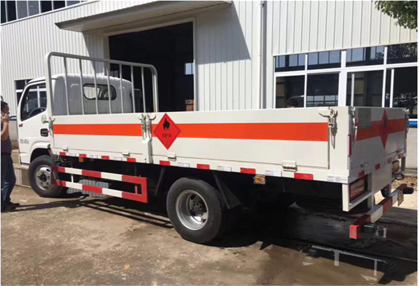 | 配置 | 该车为危险品运输车,该车主要用于运输具有独立容器(瓶)包装的液化石油气,丁烷,丙烷,打火机或打火机加油器,类项号2.1.运输独立容器(瓶)包装的非易燃无毒气体:压缩氧,二氧化碳,(氮,氦,氩,氖). 类项号2.2.随底盘选装前面罩,前保险杠,前组合灯具.厢体颜色可变化,文字喷涂位置可变化,后部选装液压升降尾板,液压升降尾板收起水平长度300mm.仅采用前盘式制动器,前置排气管,子午线轮胎,限速装置的底盘,限速80km/h.安装具有卫星定位功能的行驶记录仪;防护材料:Q235,连接方式:左右侧面及后下部防护均采用焊接连接,后部防护断面尺寸(mm):50?00,后部防护离地高度(mm):450.ABS厂家及型号:襄阳东风隆诚机械有限责任公司/ABS/ASR-24V-4S/4M.仅采用发动机CY4BK551,YC4FA115-50,D28D11-5DA,YN33CRE1.此4款发动机油耗均为17.5L/100km. | ||