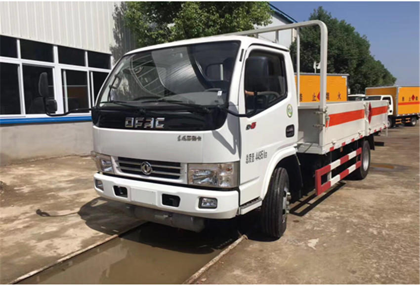 底盘部分:采用东风危货专用底盘,国五排放标准,朝柴102马力发动机,前盘后鼓,ABS,限速装置,方向助力,空调,气刹,排气管前置,整车长5995×2200×2450mm,内尺寸4050×2000×550mm,700R16钢丝胎,