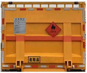 货箱外还应涂装告示、品菱形标示、危险指示灯、橙色爆字等表示,方便其他人员识别与发现。