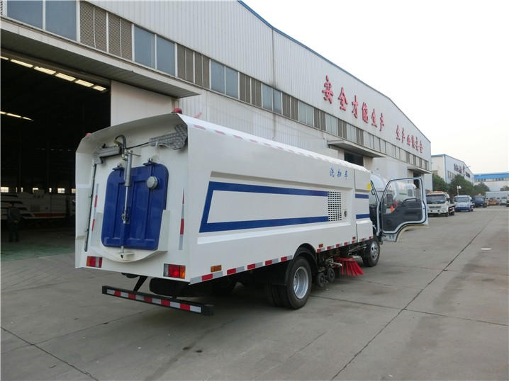 五十铃洗扫车采用五十铃600P系列国V二类QL1070A5KAY型底盘改装,加装副发动机、风机、高压水泵、清水箱、垃圾箱、左右立扫、带喷水杆的宽吸嘴、低压冲洗系统、垃圾箱自洁,扫盘降尘系统,液压系统、专用装置电控系统和副车架等改装而成。
