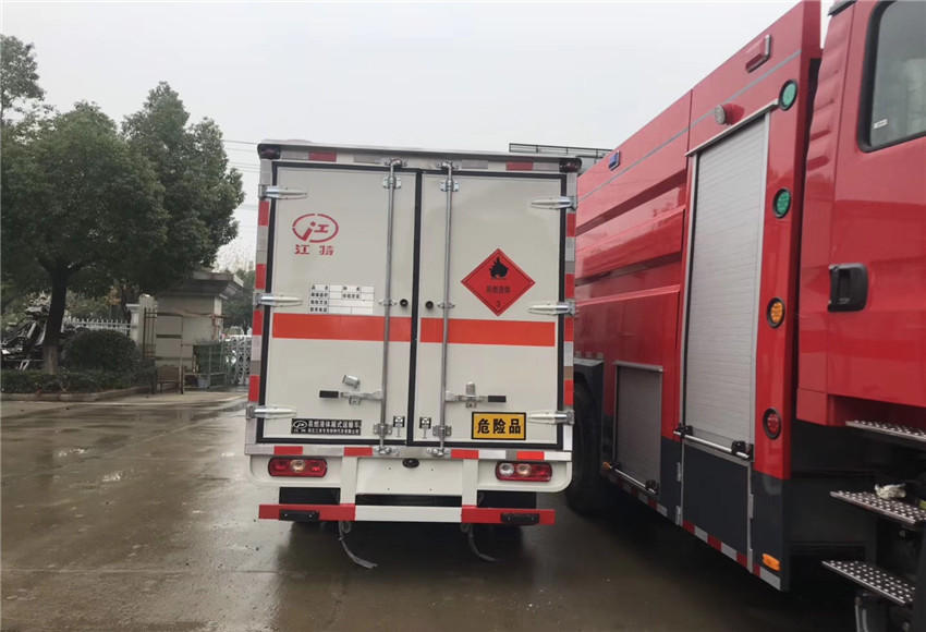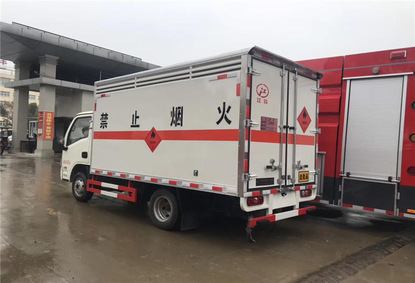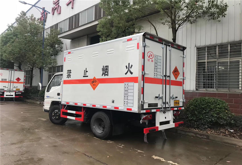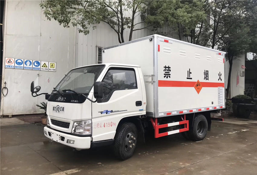 底盘部分:江铃牌烟花爆竹专用运输车配置:、采用江铃危货底盘,国五排放标准,五十铃115马力发动机,带前盘制动,限速,排气管前置,方向助力,ABS,原装空调,额载1.365吨