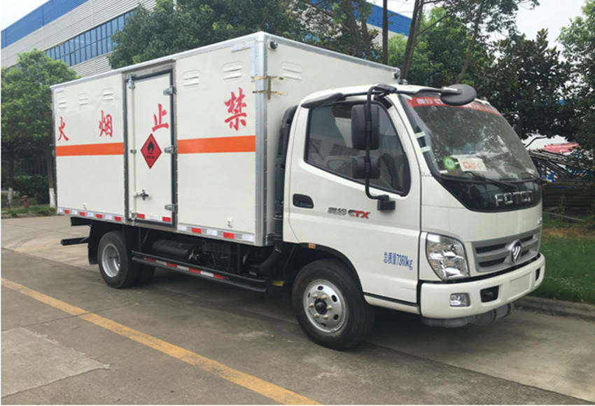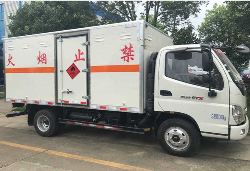 上装部分:厢体内尺寸:5130*2350*2000mm, 箱体采用外冷板,内铝板,中间钢材骨架,填充阻燃材料,箱体内安装定位环,感应报警器,后门防盗报警器,静电带,灭火器,防火罩,危险警示三角灯,危险标识,警告标识,国标反光板,加装侧开门。箱体颜色白色。