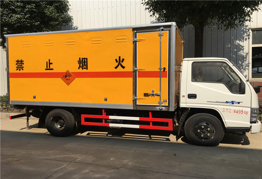 | 配置 | 厢体顶部封闭,不可开启, 该车随底盘选装驾驶室前面罩,前保险杆,前组合灯具,前雾灯;选装液压后尾板,尾板收起状态水平长度300mm,运输品名:黑火药,压缩黑火药,炸药,雷管,烟花爆竹等,类项号:1.1B,1.1D,1.1G,1.2G,1.3G,1.4G 等,厢体侧面板选择开百叶窗,选装不带侧门,侧门型式及位置,选装不开侧门时整车宽度1950mm,车辆类别EX/Ⅱ,选装开侧门时整车宽度2010mm,选装厢体结构造型,选装瓦楞板及平面厢体,厢体颜色可变化,文字喷涂位置可变化. ABS系统型号:APG3550500A,ABS系统生产厂家:浙江亚太机电股份有限公司.安装限速装置,最高车速80,仅选用安装前置排气管,前轮安装盘式制动器及子午线轮胎的底盘,安装具有卫星定位功能的行驶记录仪.侧面及后下部防护装置材料为Q235,与车架采用焊接连接.后下部防护装置断面尺寸(mm):100?0,离地高度:450mm,JX493ZLQ5,JX493ZLQ5A发动机油耗均为13.0L/100km | ||