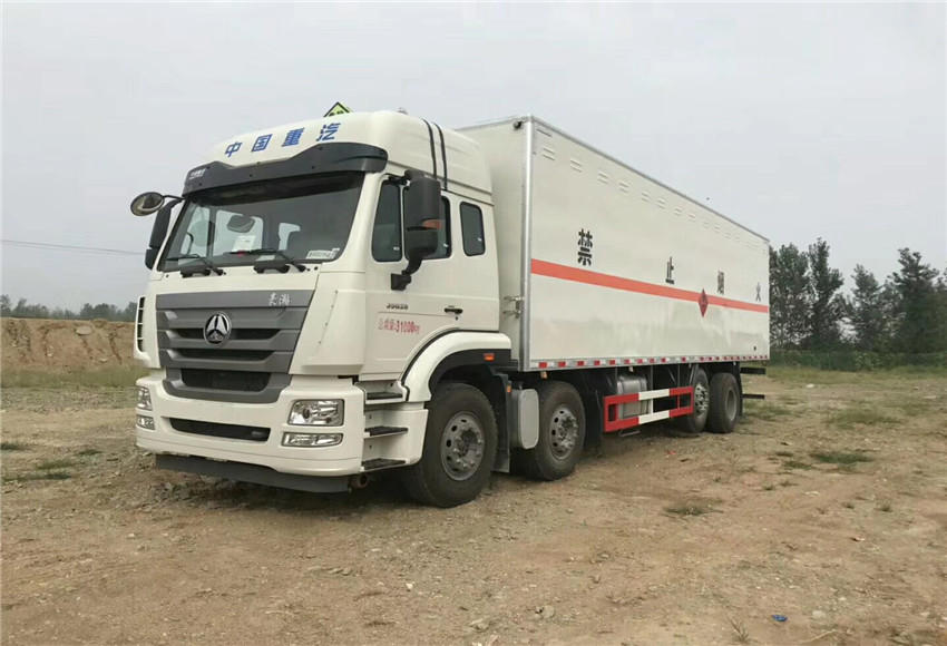 底盘部分:重汽牌前四后八易燃液体厢式车配置:1100R20钢丝胎,282(8)双层大梁,350L铝合金油箱,气囊减震座椅,ABS ,车载终端,空调,电动玻璃,限速装置,前盘式制动,重汽280马力发动机。