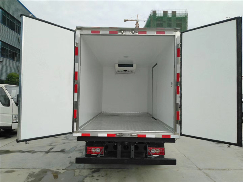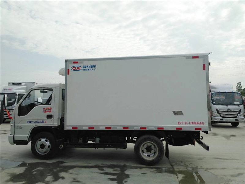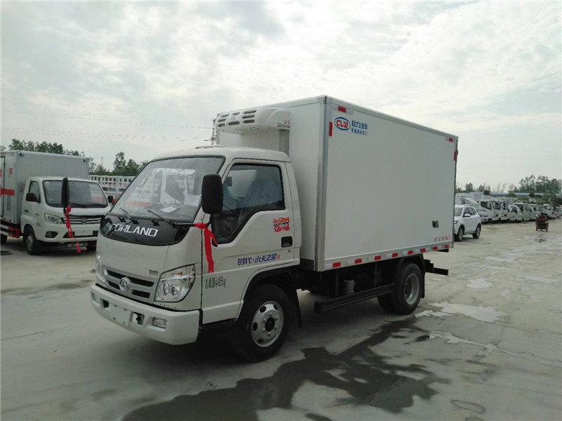 福田国六时代冷藏车,整车型号BJ5045XLC9JB5-54,外形尺寸5490*1850*2800mm,厢体内尺寸3500*1670*1700MM,底盘采用福田原厂底盘,国六排放,全柴115马力发动机,650钢丝胎,2850轴距,气刹,五档箱,动转,ABS,可调方向盘,电控熄火,巡航,可调大灯,刹车自动调整臂,厢体采用内外玻璃钢、中间8CM 厚聚氨酯保温板、底板为防滑花纹铝板,不锈钢门锁件,配-15度国产制冷机组,加装中侧门,内部做肉钩导轨3道,肉钩30个,其余标配。厢体颜色白色。