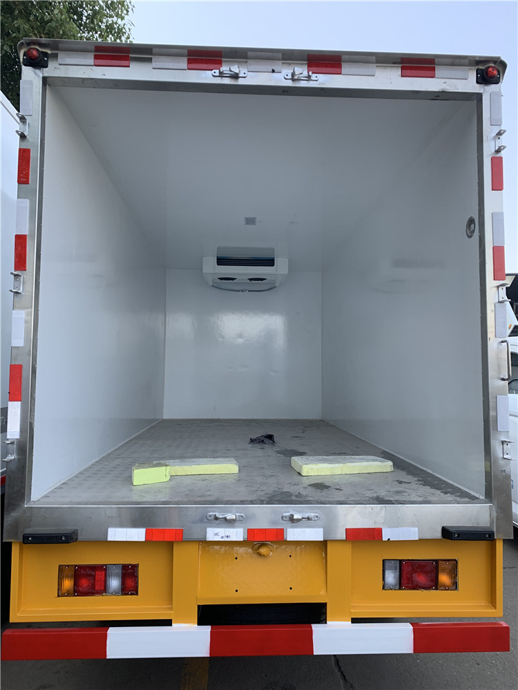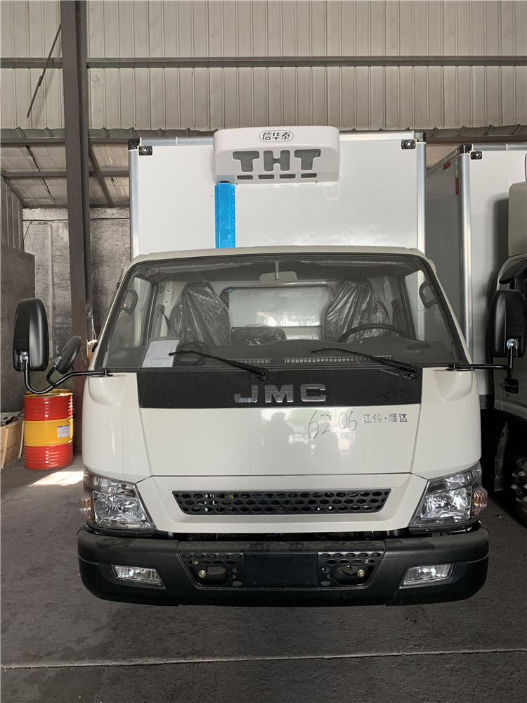 配置:采用江铃单排驾驶室,国五排放,轴距3360mm,方向助力,ABS,轮胎:700R16,发动机型号:JX493ZLQ5,功率:85KW,五十铃115马力柴油机,气刹,厢体内尺寸:4100*2060*2040mm,厢体采用内外玻璃钢、中间8CM 厚聚氨酯保温板、底板为防滑花纹铝板,不锈钢门锁件,配-5度国产制冷机组,加装侧开门,其余标配。厢体颜色白色