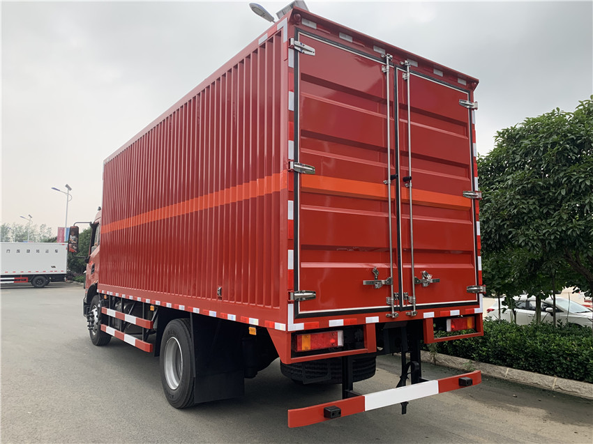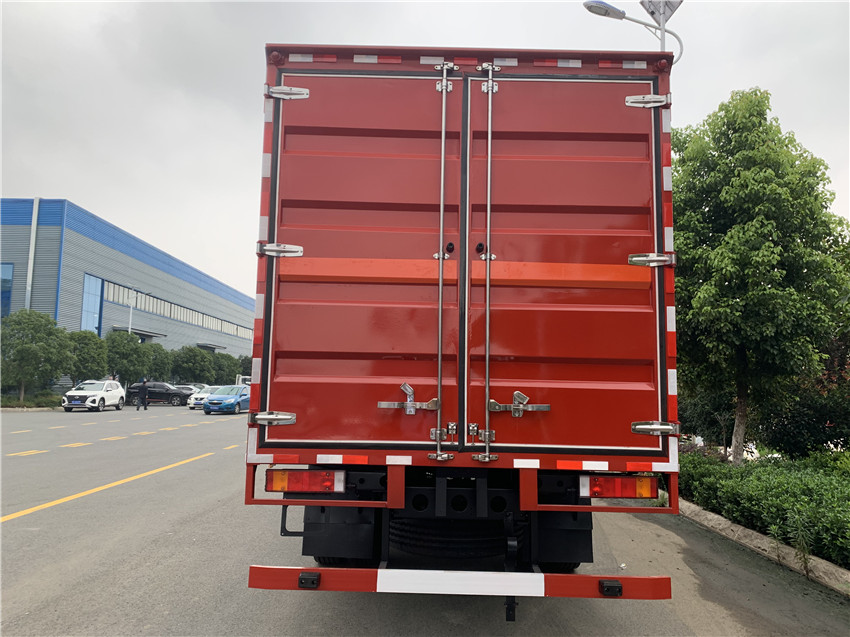厢体配置:厢体为双层金属骨架结构,外部为冷扎钢板,内壁采用铝合金板蒙面,夹层为隔热阻燃材料填充,侧壁设有防雨功能自然通风窗口,底部铺有阻燃导静电胶板外观有危险品标识,两侧设置灭火器固定支架,安装MFZ型手提式灭火器,防火熄灭器,危险品三角顶灯,反光标,防静电拖带,3类易燃液体标示牌,其余标配 上户10.4吨