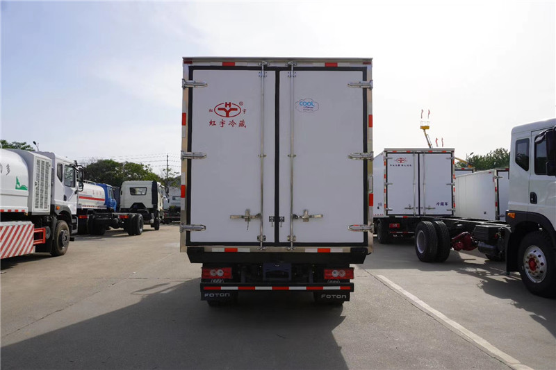 配置:2.1米宽单排驾驶室,国五排放,3280mm轴距,6吨后桥,6档变速箱,气喇叭,空调,7.50R16钢丝胎,中控门锁,电动门窗,遥控钥匙,潍柴160马力,货厢内尺寸4000*2300*2300mm,厢体采用内外玻璃钢、中间8CM 厚聚氨酯保温板、厢体顶部加装四排导轨,底板为钢璃钢,加装通风槽,不锈钢门锁件,配空车可达到零下负15度进口RV580冷王制冷机组,其余标配。厢体颜色白色。赠送倒车影像。车头红色。