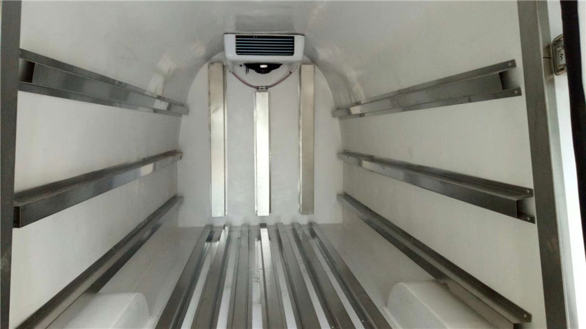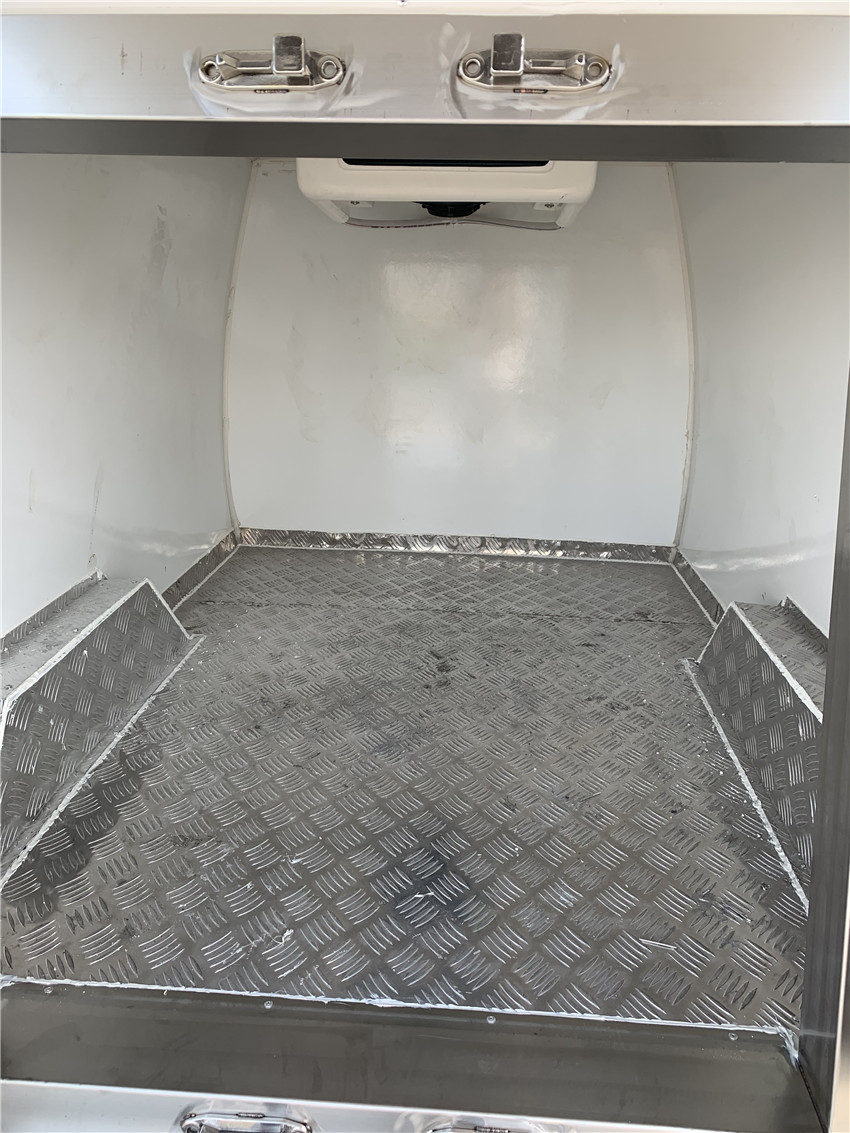 四、选装配置:导轨肉钩、T型通风槽、右侧开侧门、温度实时监控带打印装置、装海鲜厢体内部面料必须选装不锈钢制造、可选装12V-24V外接电源(车辆在停止时,厢体通过外接电源进行制冷)。