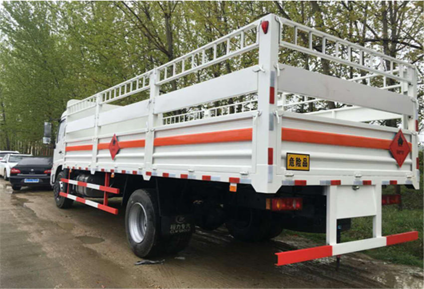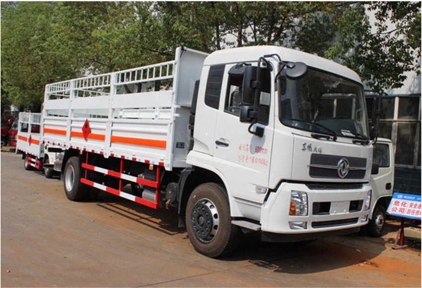 | 配置 | 该车适用于运输危险物品为危化品运输车。主要用于运输具有独立容器(瓶)包装的液化石油气,丁烷,乙炔,乙烷,丙烷,丁烯,打火机或打火机加油器,二氧化碳,压缩氧(氮,空气,氦,氩,氖),类项号:2.1,2.2。该车运输的介质为2.1项易燃气体时,车辆采用”易燃气体”标识牌,运输的介质为2.2项非易燃无毒气体时,车辆采用”不燃气体”标识牌。采用发动机EQH160-52,EQH160-53,EQH180-52,EQH180-53分别对应的油耗值为(L/100km):24.8,24.8,24.8,24.8。整车长/轴距/前悬/后悬对应关系为(mm):9000/5000/1430/2570,9000/5000/1365/2635,9000/4700/1430/2870,8600/4500/1430/2670,8600/4500/1365/2735.该车安装带有卫星定位功能的行驶记录仪,仅采用前盘制动器和安装ABS以及前置消声器的底盘,采用子午线轮胎,前置排气管,安装限速装置,限速80km/h。专用装置为固定用卡槽。侧防护和后防护装置材料材质为Q235A碳钢,侧防护与箱体底部焊接连接,后防护装置与车架采用焊接连接。后防护截面尺寸(mm):120?0,离地高度为440mm。ABS型号:3631010-C2000,ABS 8;ABS生产厂家:东科克诺尔商用车制动系统(十堰)有限公司。 | ||