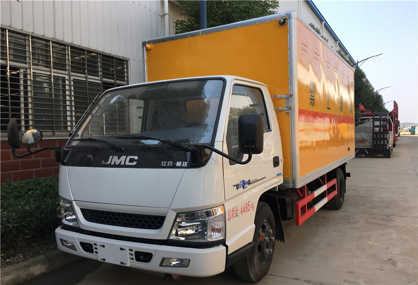 底盘部分:采用江铃危货底盘,国五排放标准,五十铃115马力发动机,带前盘制动,限速,排气管前置,方向助力,ABS,原装空调,额载2.800吨,