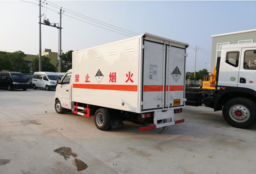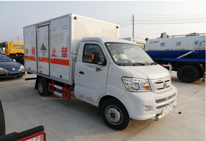 上装部分:外形尺寸:5500*1850*2600mm,厢体内尺寸:3200*1700*1700mm,厢体采用外冷板,内饰铝板中间保温层制作,厢体底部和前部铺铺防静电胶皮,厢体安装固定货物卧环,安装气体泄漏报警器防盗报警器,带中开侧门,后双开门,带危险品顶灯,带两根拖地静电带,带危险品标示,带灭火器,其余标配。